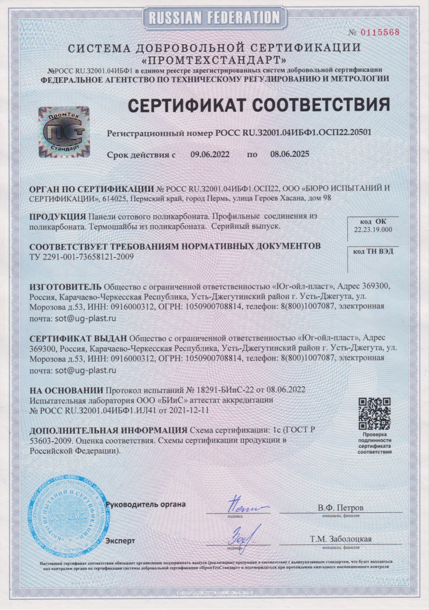 Подтвержденное сертификатами и действующими ГОСТ
