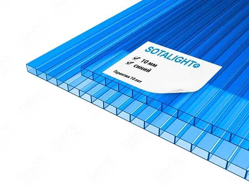 Сотовый поликарбонат 10 мм SOTALIGHT синий 2100х12000 мм - это прочный и легкий материал, который отлично подходит для использования в различных строительных и дизайнерских проектах. Поликарбонат обладает высокой прочностью и устойчивостью к воздействию внешних факторов, что делает его идеальным выбором для создания крыш, навесов, ограждений и других конструкций.