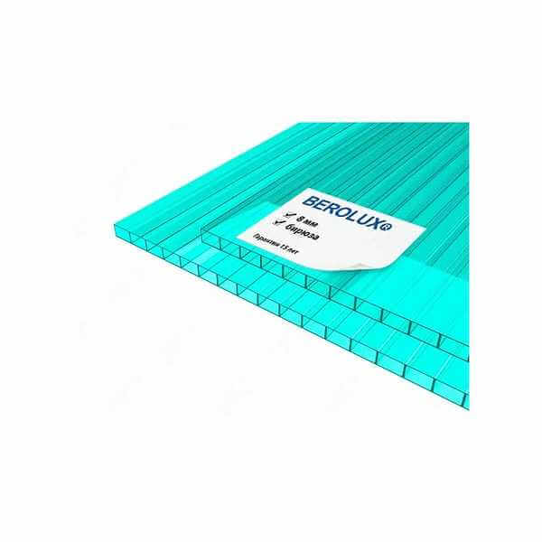 Сотовый поликарбонат 8 мм BEROLUX бирюза 2100х6000 мм - это прочный и легкий материал, который отлично подходит для использования в качестве прозрачного покрытия. Поликарбонат обладает высокой устойчивостью к ультрафиолетовому излучению, ударопрочностью и хорошей теплоизоляцией, что делает его идеальным выбором для различных строительных и дизайнерских проектов.