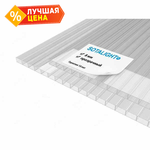 Сотовый поликарбонат 8 мм SOTALIGHT прозрачный 2100х12000 мм