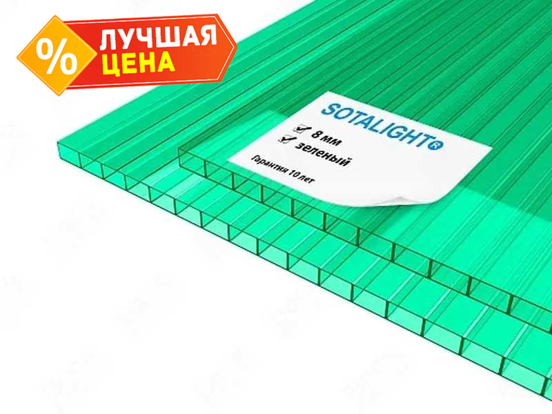Сотовый поликарбонат 8 мм SOTALIGHT зелёный 2100х12000 мм - это прочный и легкий материал, который отлично подходит для использования в различных строительных и дизайнерских проектах. Поликарбонат обладает высокой прочностью и устойчивостью к воздействию внешних факторов, что делает его идеальным выбором для создания крыш, навесов, ограждений и других конструкций.