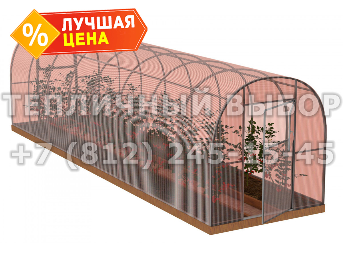 Теплица из поликарбоната-фито Арочная 2,1х8 h=2 м профиль 25х25 мм