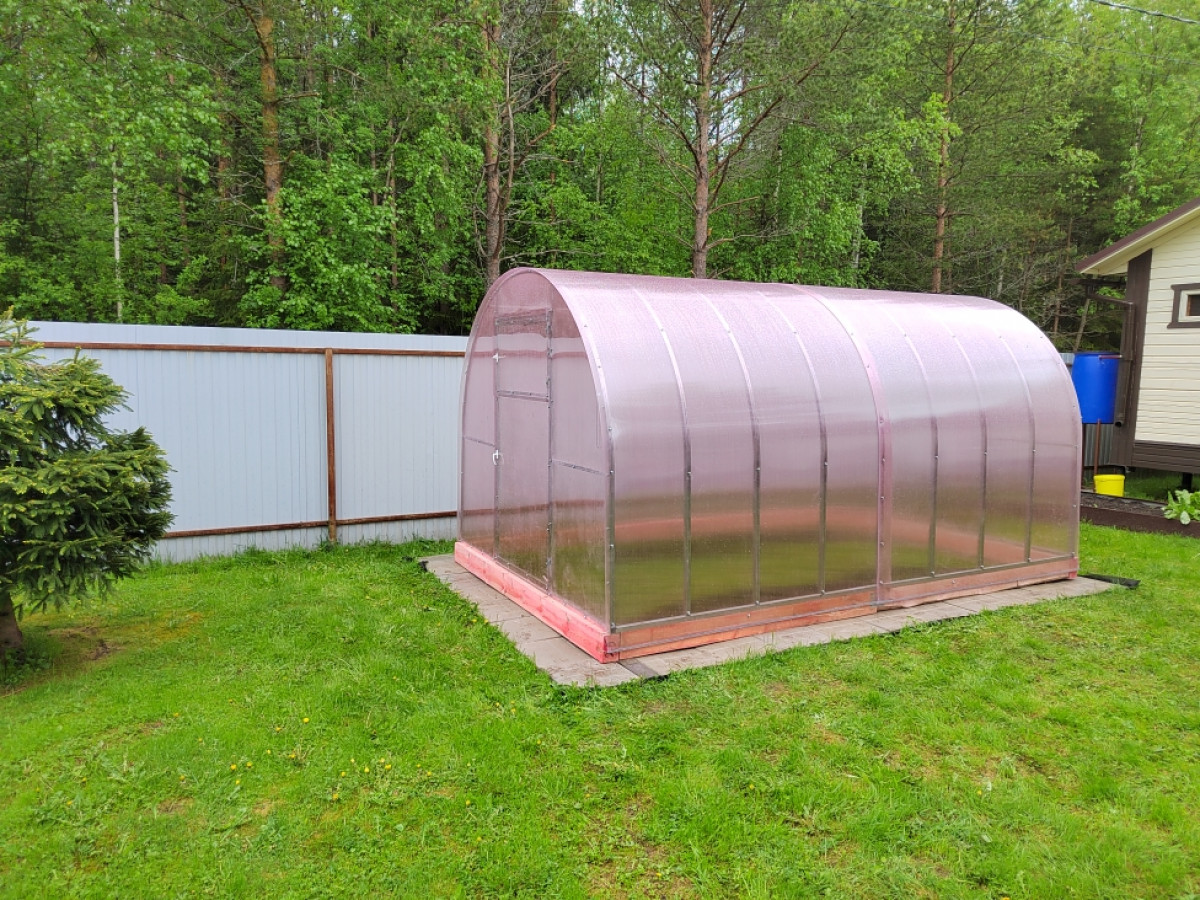 • практически прямые боковые стороны теплицы позволяют использовать пространство по максимуму и выращивать культуры, плотно прилегающие к стенкам