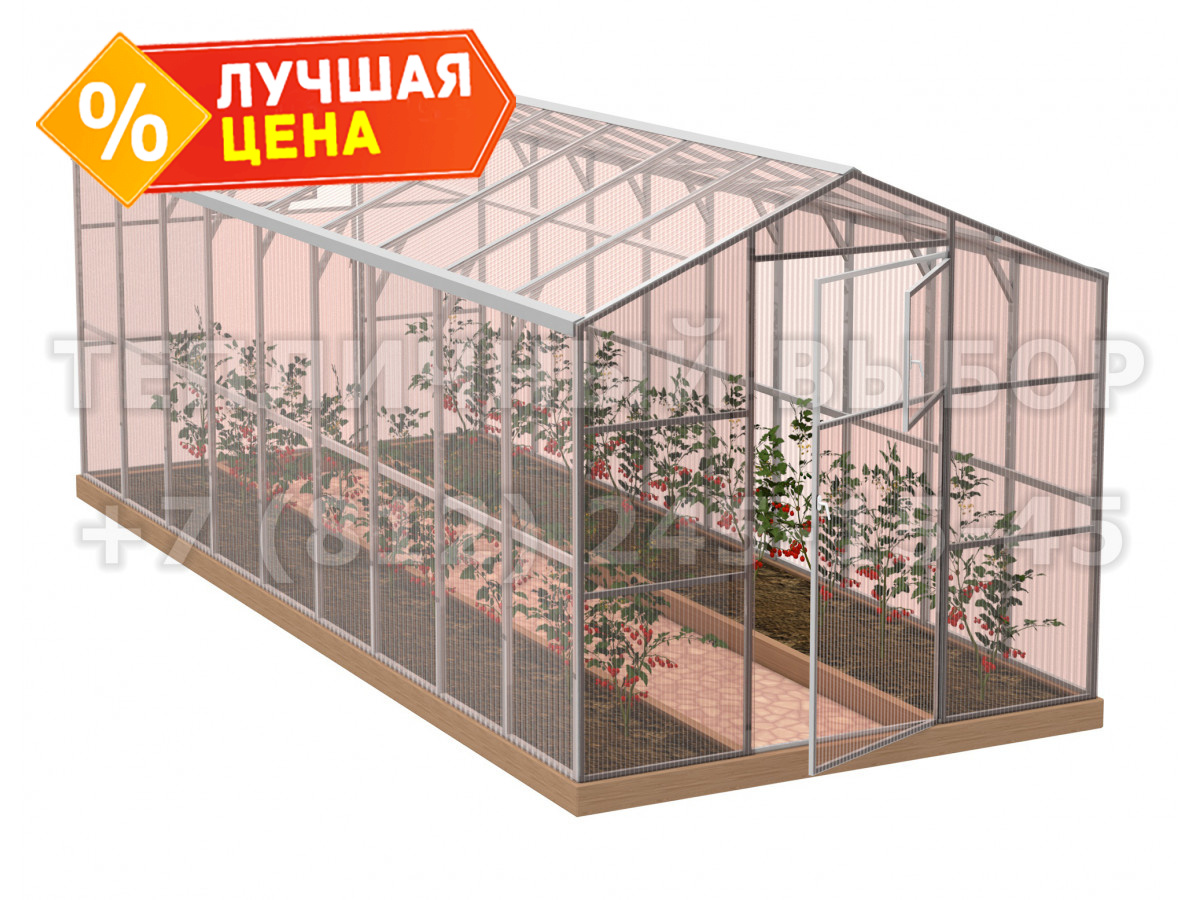 Теплица из поликарбоната-фито Усиленная Домиком 2,3х12 h=2.1 м профиль 25х25 мм