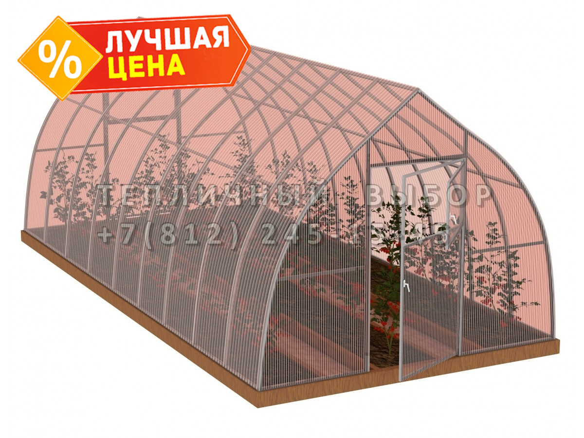 Теплица из поликарбоната-фито Усиленная Капелька 2,5х6 h=2.3 м профиль 25х25 мм