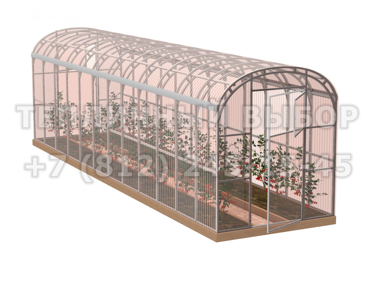 Теплица из поликарбоната-фито Усиленная Прямостенная 2,1х12 h=2.1 м профиль 20х40 мм