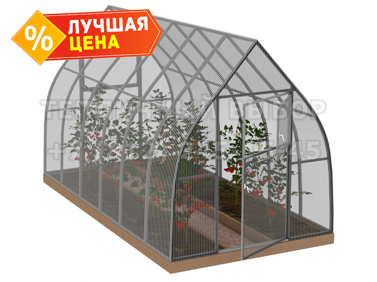 • практичная конструкция с дверьми в каждом торце обеспечивает легкий доступ в теплицу и её проветривание