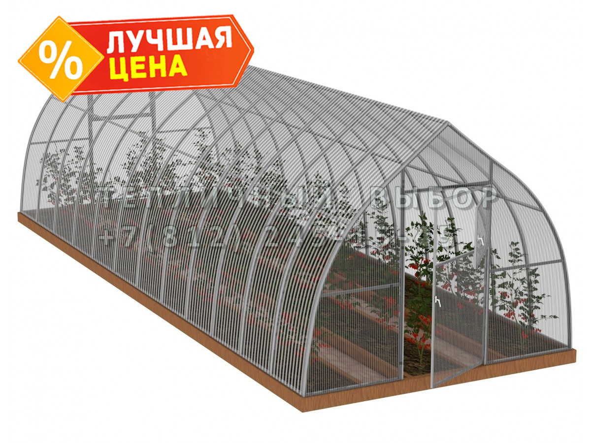 Теплица из поликарбоната Усиленная Капелька 2,5х8 h=2.3 м профиль 25х25 мм