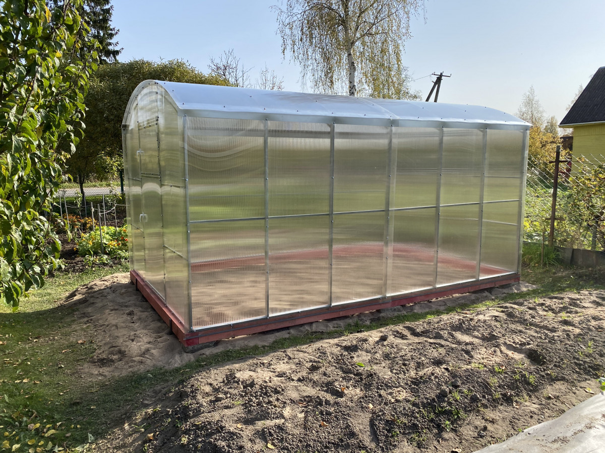 В разобранном виде теплица состоит из отдельных сварных рам в виде дуги. Транспортные габариты 2100х2100 мм. Для перевозки необходим микроавтобус или автоприцеп.